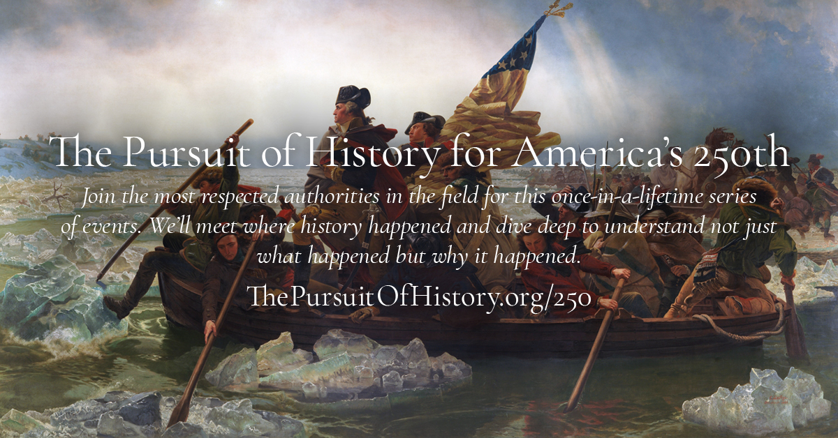 “The Pursuit of History for America’s 250th is a once-in-lifetime opportunity to explore these historic sites and events with the nation’s foremost experts,” according to Lee Wright, founder and president of The Pursuit of History. “This is the history—the whole story, without embellishment or apology—of our long struggle for Independence and becoming a new nation.”